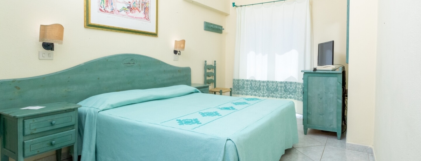 Ampia e luminosa, finemente arredata in tipico stile sardo, con splendida vista sul giardino.