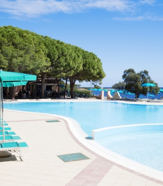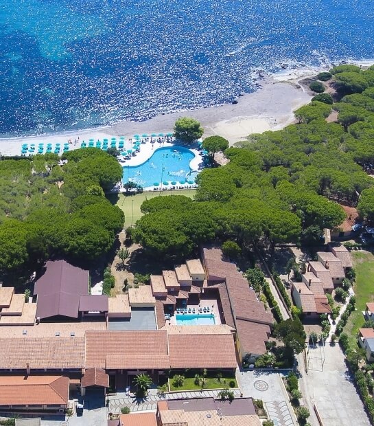 Interamente immerso in una fitta pineta, adiacente all’omonima spiaggia, è composto da villette a schiera collegate tra loro da verdi vialetti e da un corpo principale dove si trovano i maggiori spazi comuni.