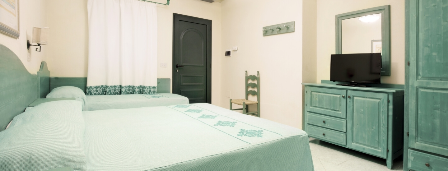 Large and bright, finely furnished in typical Sardinian style, with a splendid view of the garden, it can accommodate 3 people.